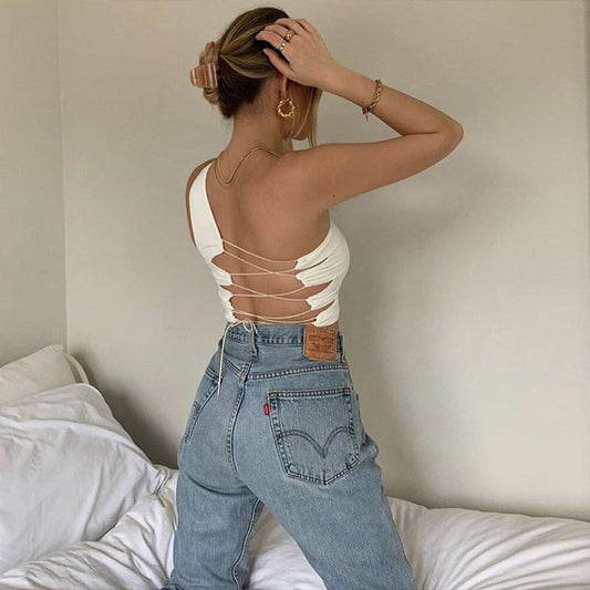 Women's Sexy Strap One Shoulder Backless Crop Top