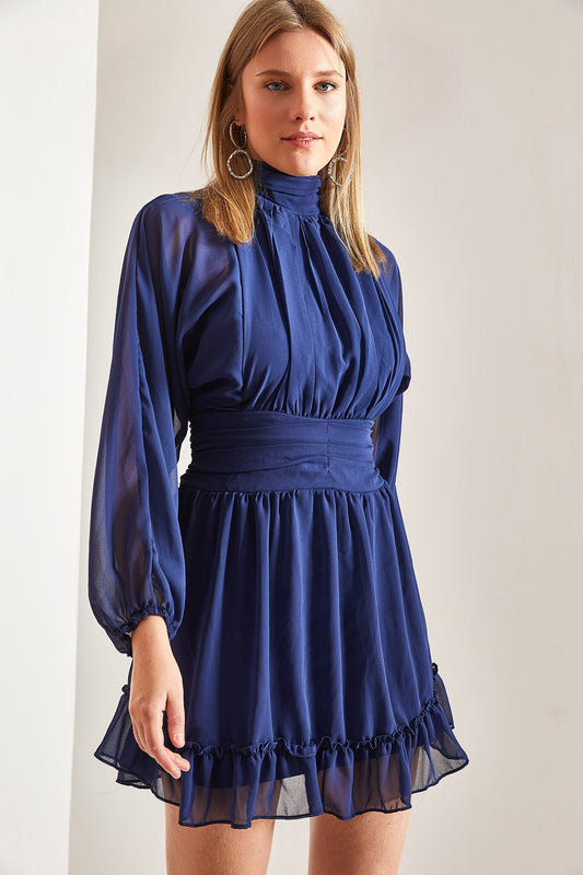 Love Yourself Long Swiss Dot Layered Dress Sea Blue