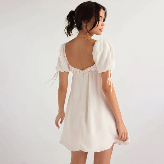 Amaya Tie Back Puff Sleeve Mini White Dress