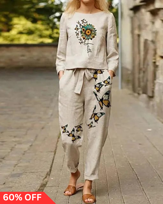 HeyGirl Butterfly Floral Print Cord Set (TOP+BOTTOM)