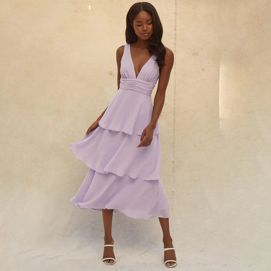 Celebration Time Lavender Sleeveless Tiered Midi Dress
