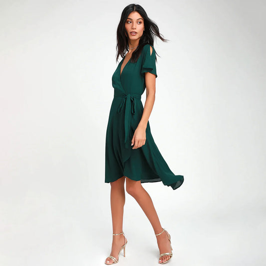 Rise to the Occasion Emerald Green Midi Wrap Dress