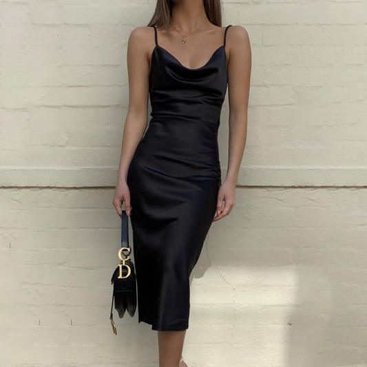 Hollywood Woman Dusty Blue Satin Midi Dress
