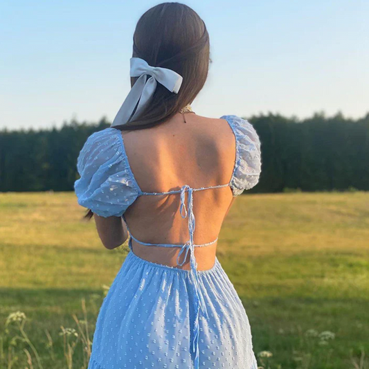 Solid Puff Sleeve Dress Mini Vestido Sexy High Waist Dress