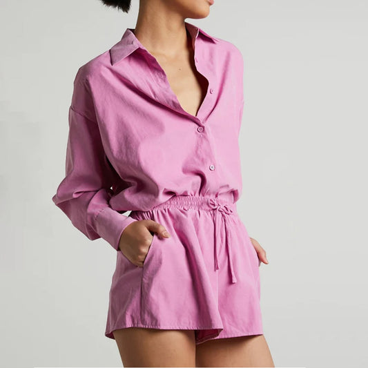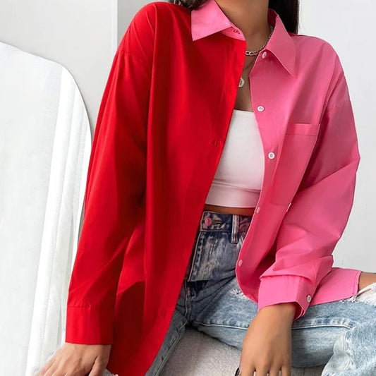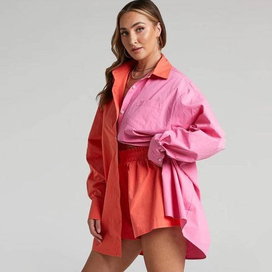 Kiss Me colorblock Oversized Button Up Shirt Set