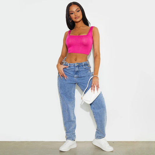 HOT PINK BASIC JERSEY SQUARE NECK CROP TANK