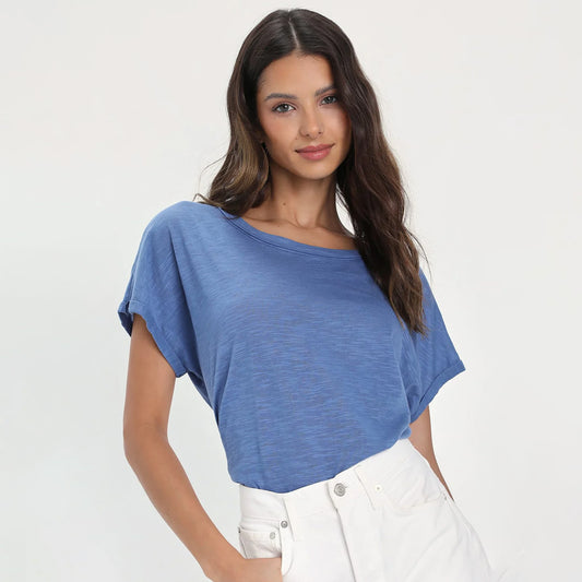 Thriving Look Blue Heather Short Sleeve Scoop Neck Top