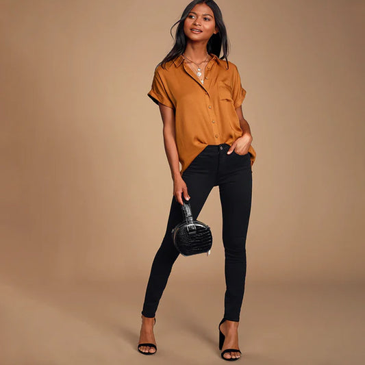 Blythe Rust Brown Short Sleeve Button-Up Top