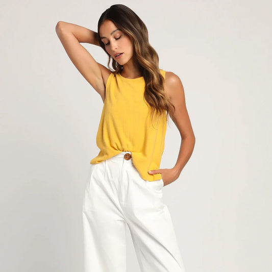 LOVE ME ACETATE SLINKY SLEEVELESS DRAPE TOP