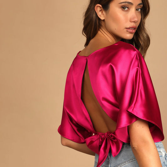 Upgrade to Chic Hot Pink Satin Tie-Back Crop Top