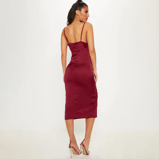 Hollywood Woman Dusty Blue Satin Midi Dress