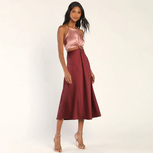 ROSE STRAPPY SATIN COWL MIDI DRESS