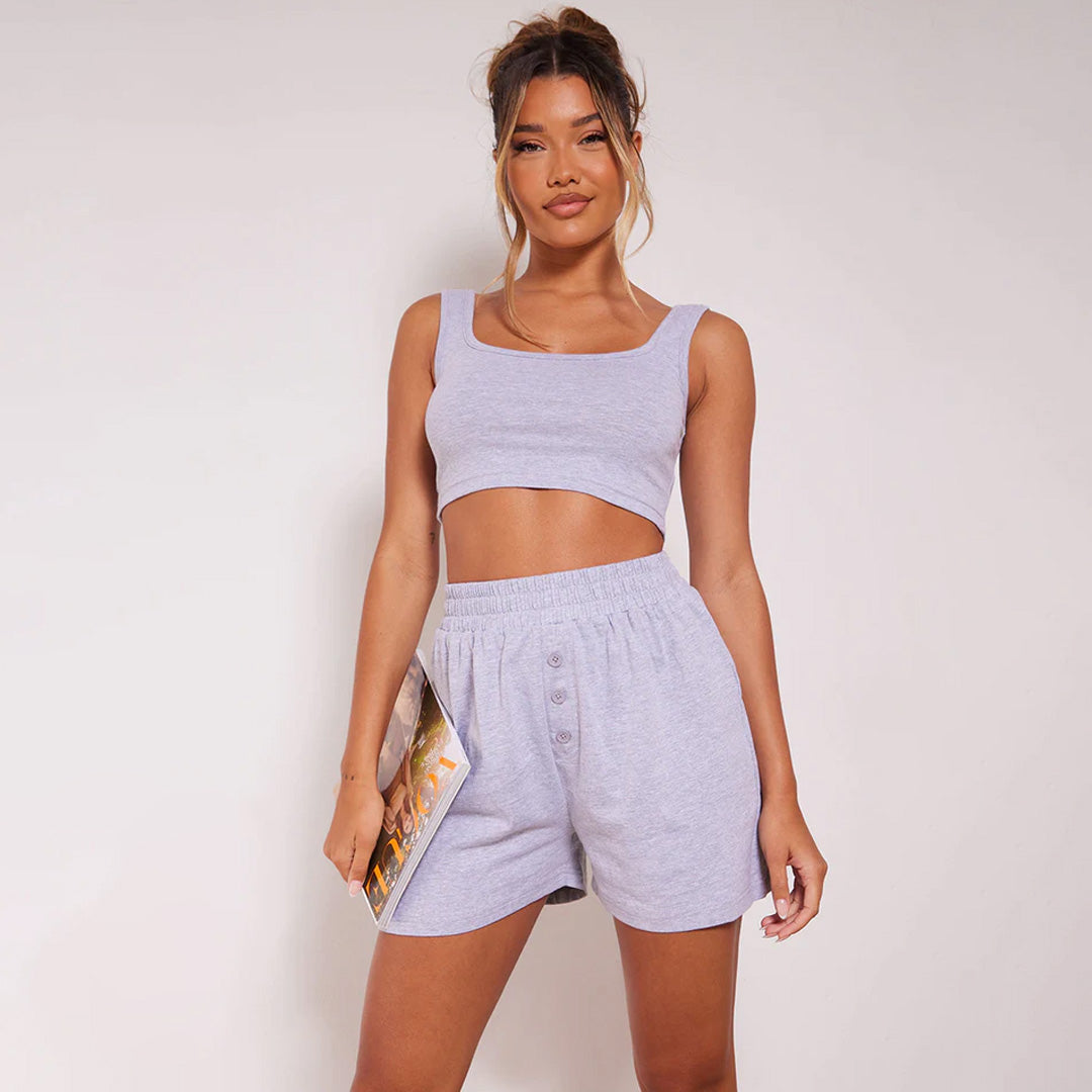 Add some comfort to your new season wardrobe with these PJ shorts doll. Featuring a grey marl material with a jersey design and button-up boxer detailing.